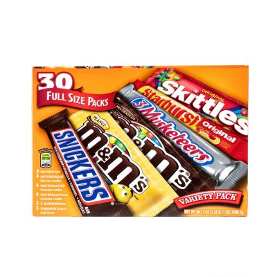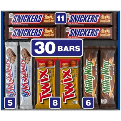 Candy bars, milk chocolate, variety pack, 30 ct box.